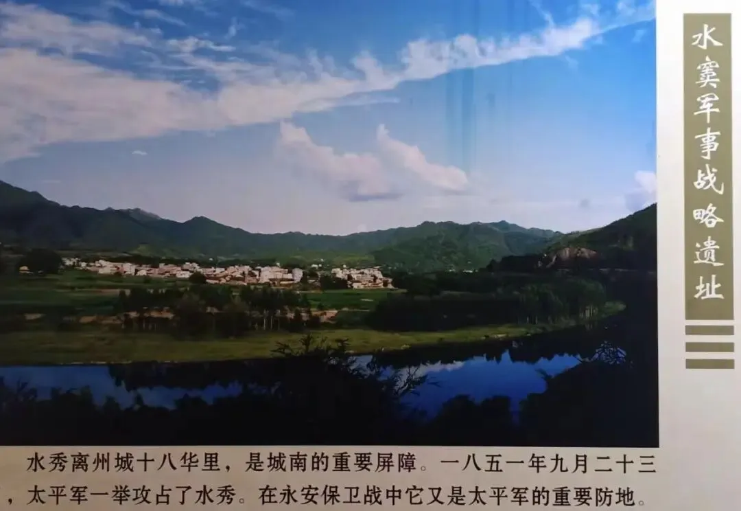 25日太平军占领州城后,即派秦日纲扼守水秀门户。太平军占领水秀后约二十天,清军开始来攻打,时间长达半年之久。在水秀战场,发生大小战斗共计20次,清军始终未能攻下水秀南大门。