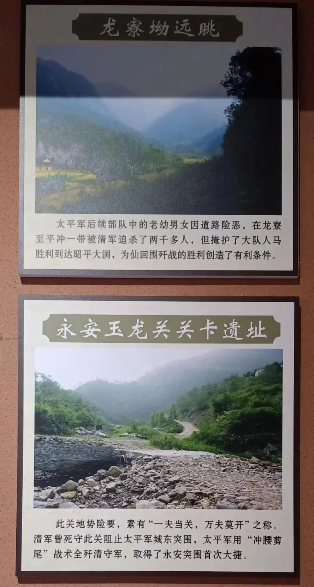 笔者认为,整合开发三冲古战场具有深远的历史意义,是否可在古苏冲口建立“太平军永安破围纪念馆”(包括花圃、停车场等),纪念馆二层楼高,具有民族特色和古朴风格,馆内展出永安突围三场大战的史料、图片介绍及实物等,并制一幅大型的“三冲大战图”耸立在纪念馆旁,在战略要地玉龙关、平冲战场、早冲、崩冲战场要竖碑纪念,并修通相关通车旅游道路。
