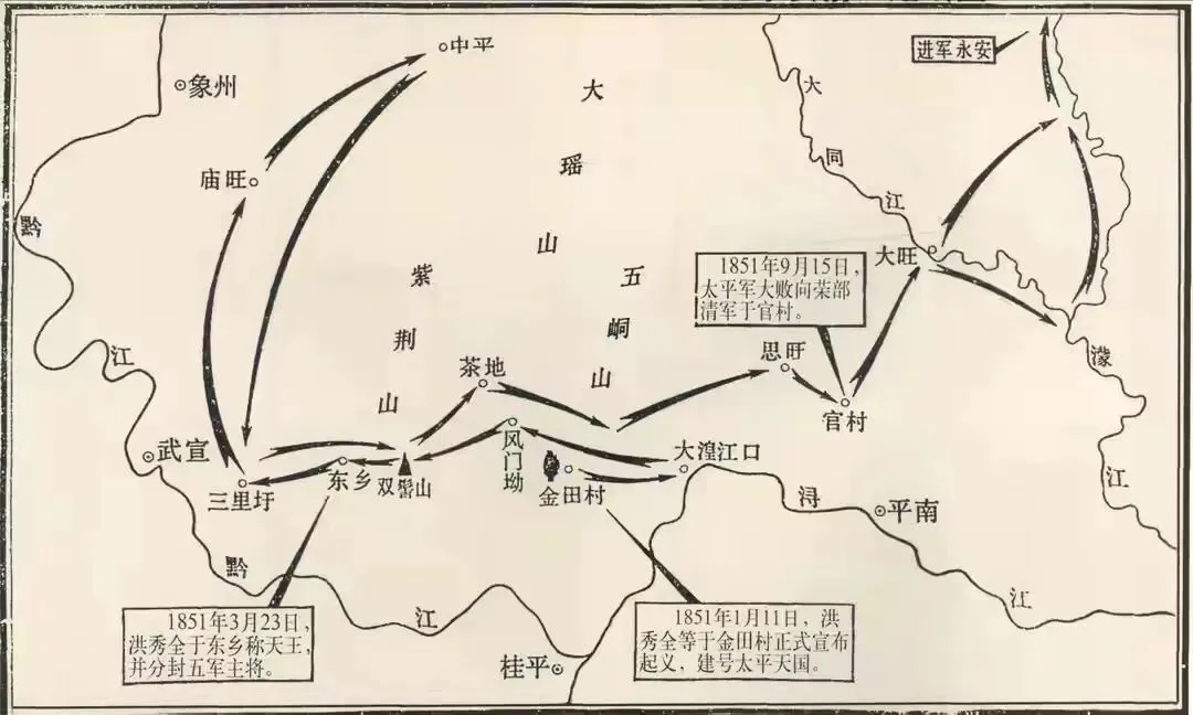 1851年9月23日,罗大纲带领太平军先锋部队迅速冲出古眉峡口,由马队先涉水渡江,一举攻占水秀。