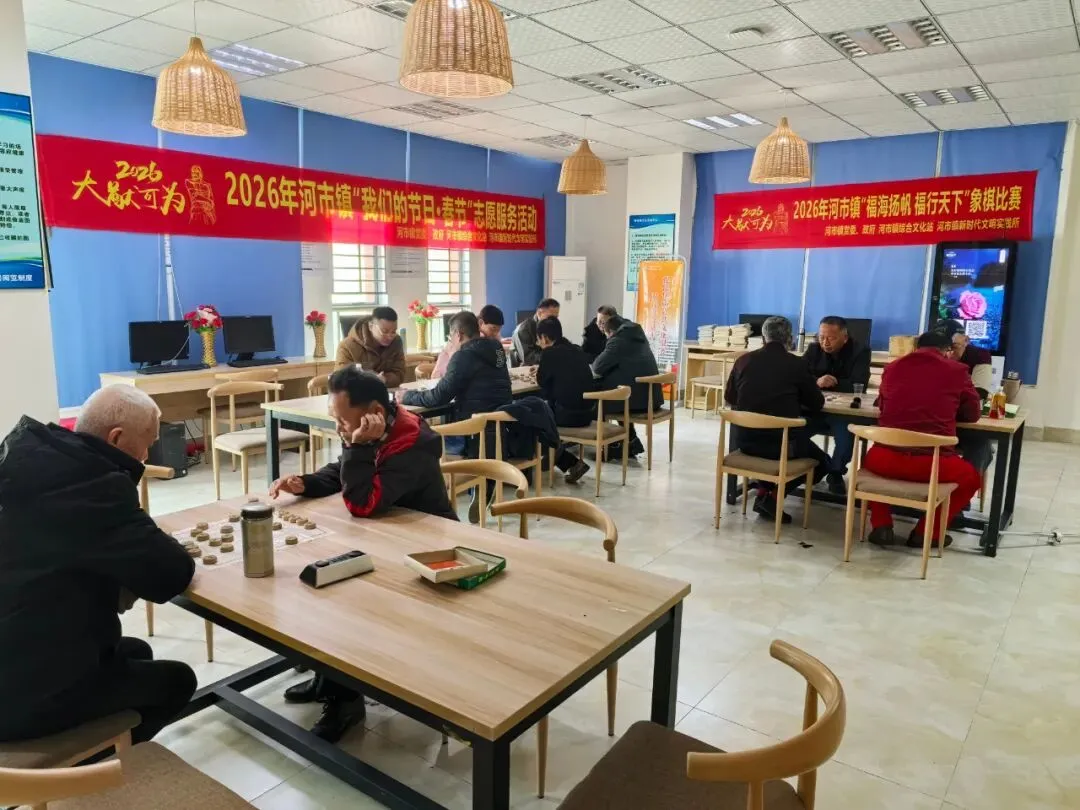 乒乓球赛的喝彩声渐渐远去,文化站二楼却悄然摆开棋盘,一场无声的较量正在上演。同一时间,河市镇文化站象棋赛也激战正酣。棋手们凝神静气,在楚河汉界间排兵布阵。67岁的林老伯是象棋赛的“老面孔”,今年他又如约而至,与老棋友们切磋技艺。“下棋讲究心静,过年虽然热闹,但坐下来下一盘棋,心就定下来了。”棋局之间,是智慧的碰撞;棋局之外,是年味的传递。