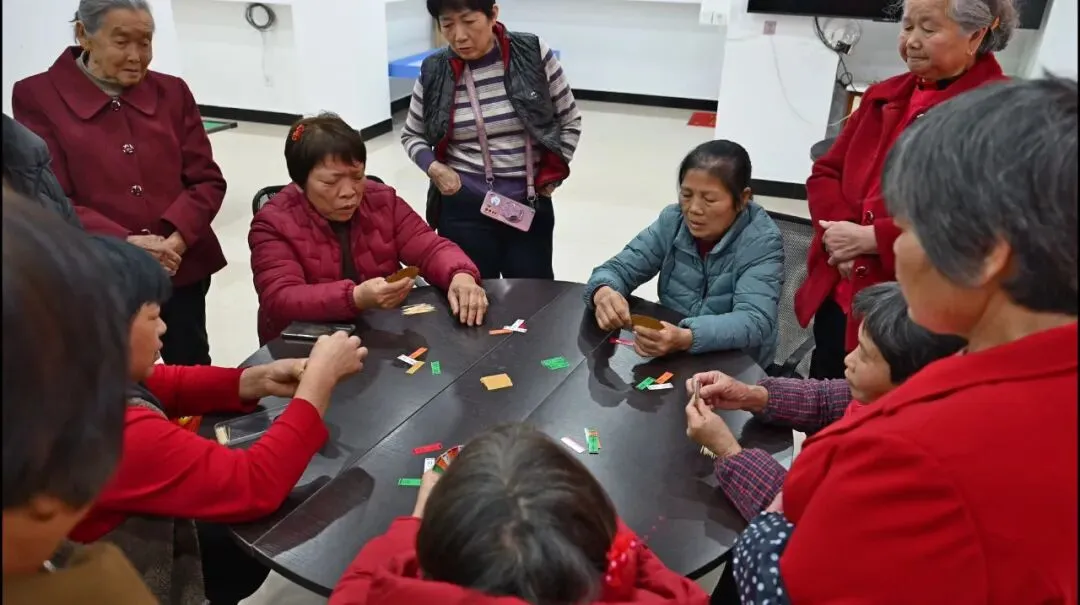 比赛现场,10余名参赛者围桌而坐,红黄白绿四色牌在指尖流转。与竞技性强的球赛棋赛不同,四色牌比赛更像一场邻里间的聚会。大家边打牌边拉家常,谁家孩子今年回来过年了,哪家做了好吃的年糕,家长里短间,年味愈发浓郁。