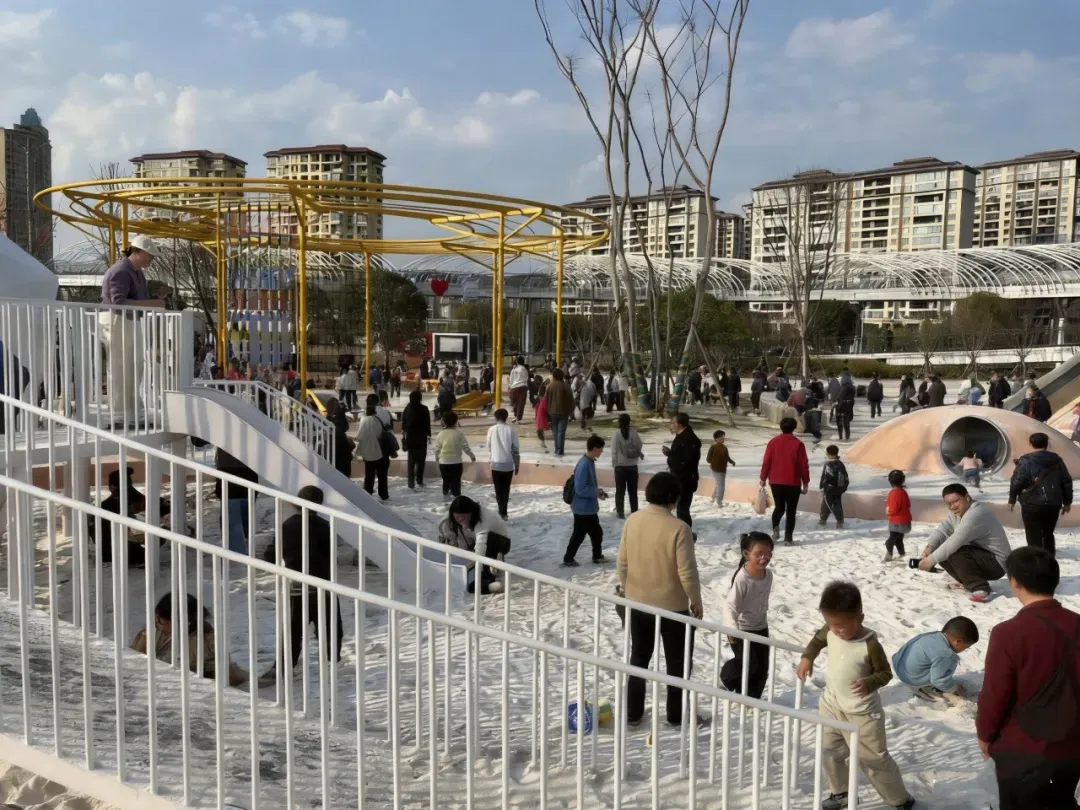 户外公园童趣满满,小朋友们尽情奔跑玩耍,滑梯、游乐区笑声不断。