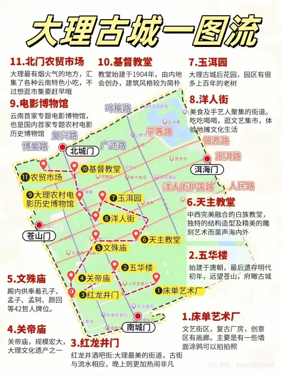 云南7天7晚旅游攻略(大理篇上)路线参考:昆明站→大理站→民宿寄存行李→大理古城→龙龛码头→才村→洱海最美S湾→原路返回至龙龛码头→大理古城 地图参考: