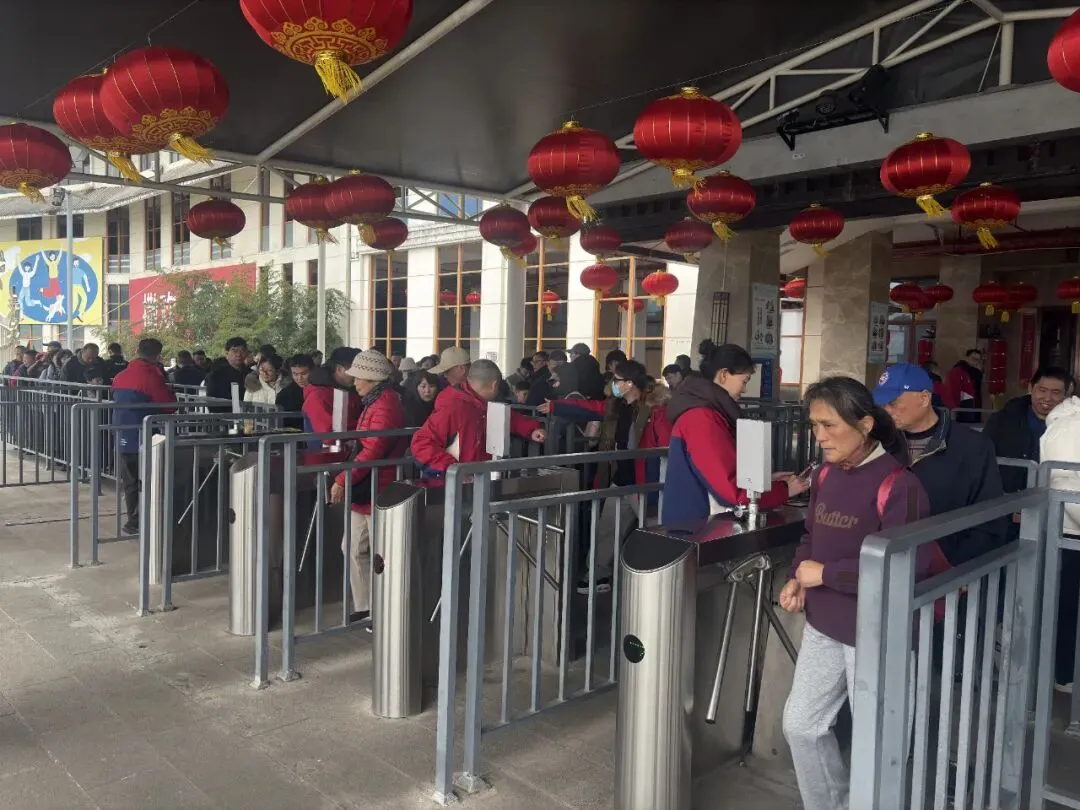 上午时分,小三峡游客接待中心已是人头攒动,年味十足。虽然游客络绎不绝,但在工作人员的引导下,大家正有序地进行检票。为了应对春节客流,景区采取了“滚动发船”的模式,确保游客无需久等,即到即走。