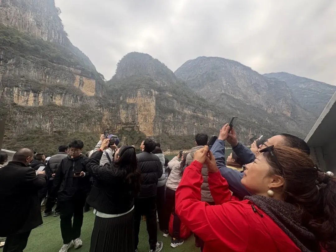 面对如潮客流,景区管理方多措并举,全力保障游客的游览体验。通过智能化调度和高效的服务,实现了游客“进得来、散得开、玩得好”。据悉,春节假期后半程,巫山小三峡的旅游热度仍在持续,景区已做好充分准备,迎接八方来客共赴这场山水间的“年味之约”。
