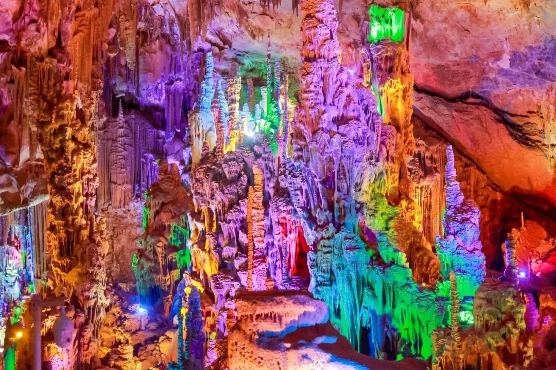 📍 水晶宫晶莹剔透的石花、石笋遍布洞中,宛如地下水晶宫殿,一步一景,随手一拍都是大片。