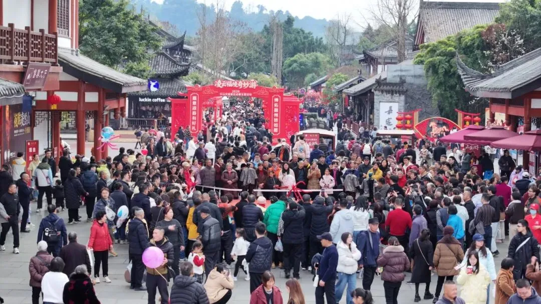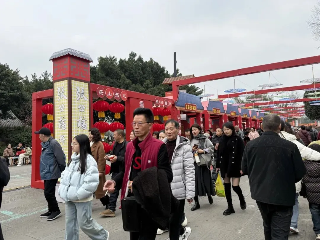 庙会现场处处皆是欢乐,“我们的节日・春节” 大舞台轮番上演歌舞、小品、乐队演唱等节目,还穿插惊喜抽奖,市民沉浸式观赏;美食文创大联展汇集乐山非遗小吃、川渝特色美食与国际风味佳肴,香气四溢;时尚文旅 IP 区、科技体验区等融合光影与文创魅力,成休闲打卡新热点,每日民俗巡游更是沿路掀起热闹浪潮。