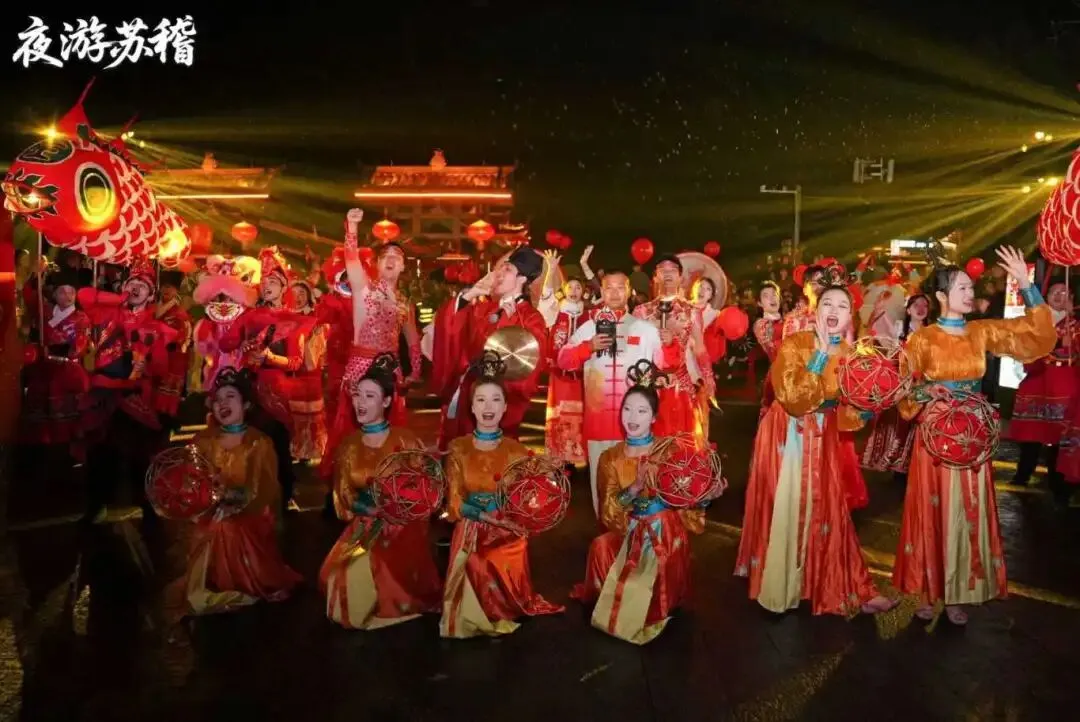 瑞马迎春,嘉州焕彩。连日来,乐山苏稽古镇张灯结彩、人声鼎沸,“夜游苏稽・马年牛气”春节特别活动正式启幕。沉浸式夜游动线、非遗铁花秀、民俗演艺等精彩内容轮番登场,为八方游客献上集国风美学、非遗传承与市井烟火于一体的新春盛宴,让千年古镇的年味彻底拉满。
