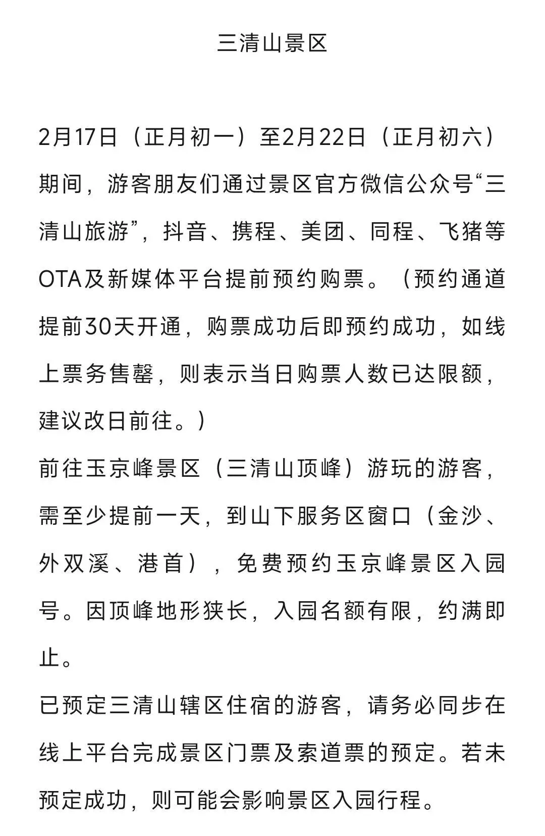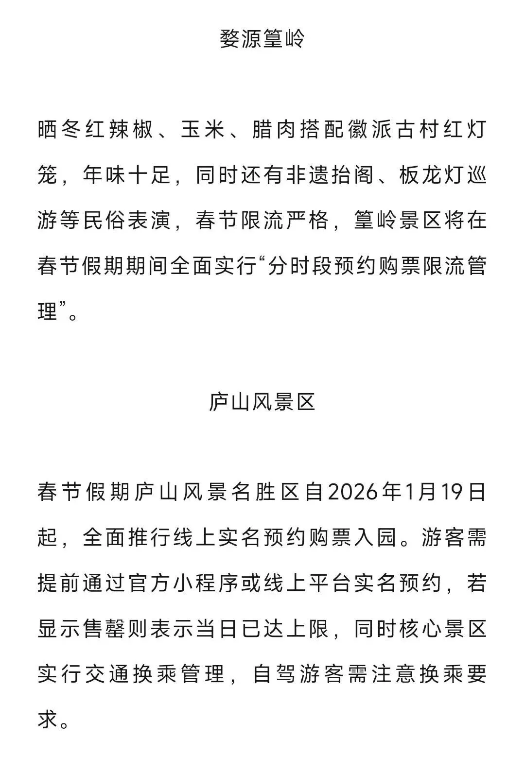 春节期间江西多个网红景区均实行“预约制+限流”管理,目前部分景区热门时段预约紧张,大家出行前一定要提前锁定门票,切勿临时前往。