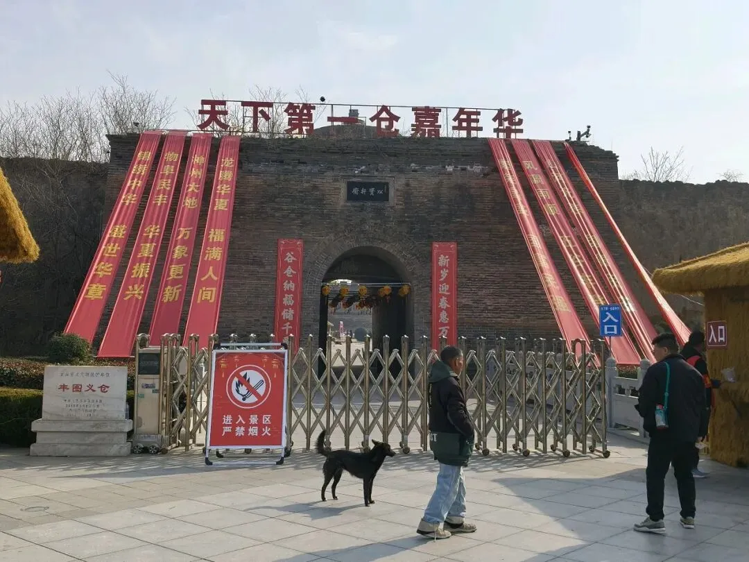 大年初二,大荔4A级景区丰图义仓景区门口有点乱,岱祠岑楼不对外开放