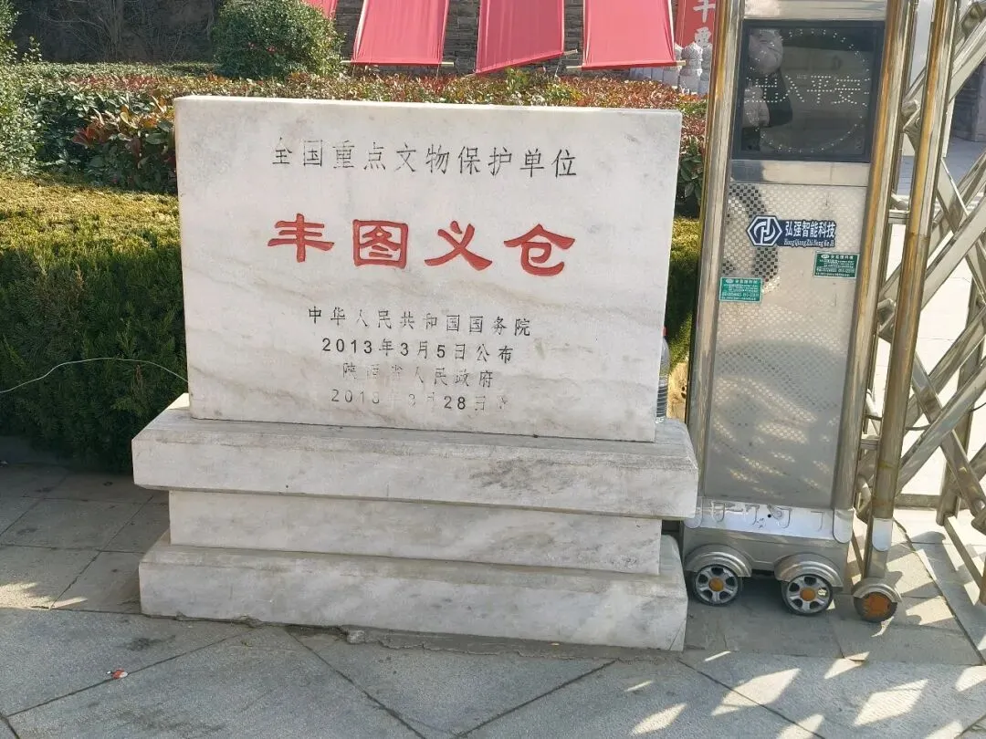 丰图义仓 是位于中国陕西省 大荔县 朝邑镇 的清代 粮仓,始建于1882年,由晚清东阁大学士阎敬铭 倡议修建,慈禧太后 御封为“天下第一仓 ”,现为全国重点文物保护单位 和AAAA级旅游景区 。 我们今天一大早从家里出发来到丰图义仓景区,这里喧闹的儿童游乐设施挡住了景区主入口,且尘土飞扬。我们小心翼翼穿过儿童游乐场来到入口广场,嘈杂的音乐震耳欲聋。我觉得这里如果播放对丰图义仓历史和大荔特色美食的介绍,是不是更有说服力?