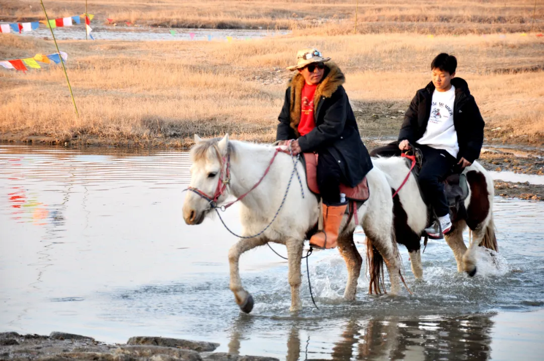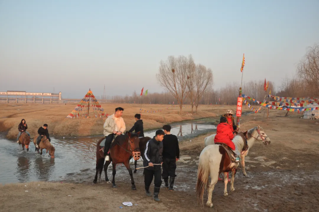 如果说风仙山的热闹是山林间的烟火温情,那么大汶河古石桥景区的火爆,则是动静相宜的别样活力。这座承载着百年历史的古石桥,青石板上印刻着岁月痕迹,桥下汶水潺潺,河畔草地如茵。这个春节,最引人瞩目的莫过于河畔的骑马运动,成为景区的“流量密码”。