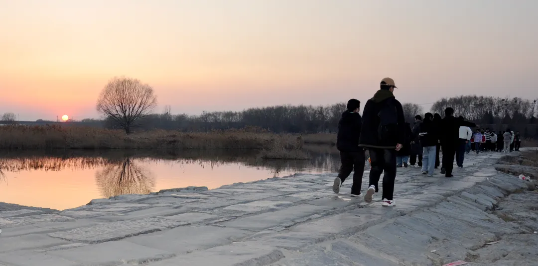 夕阳西下,余晖洒在大汶河古石桥上,青石板泛着温柔的金光。站在古桥之上,凭栏远眺,汶水悠悠向东流去,岸边草木与晚霞相映成画。落日熔金,水波荡漾,远处炊烟袅袅,近处游人笑语声声,一幅宁静又动人的夕阳美景徐徐展开。不少游客驻足桥上,沉醉在这落日余晖里,用镜头定格古桥、流水、晚霞交织的诗意瞬间,为这场新春近郊之旅,添上了一抹温暖又浪漫的色彩。