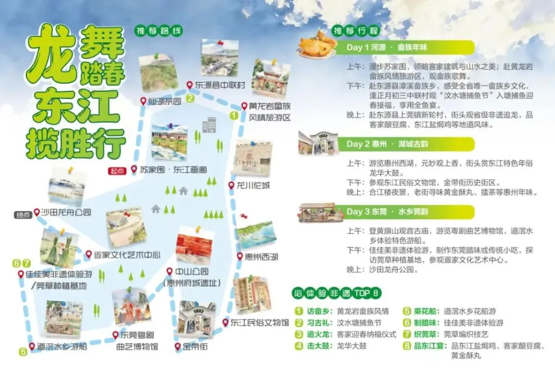 “龙舞踏春 东江揽胜行”——奔赴东江春日,开启客家、畲族与水乡的年俗巡礼。