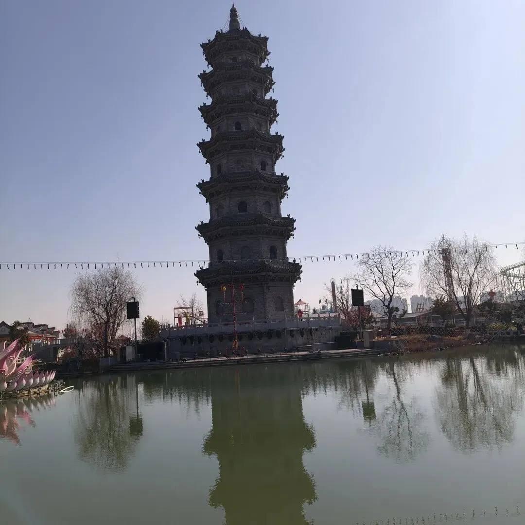 二十分钟后,我看到一座纯白的雕像屹立在广场前,后面是一池湖水,一座古塔巍然而立。绕湖穿桥,来到了塔前。