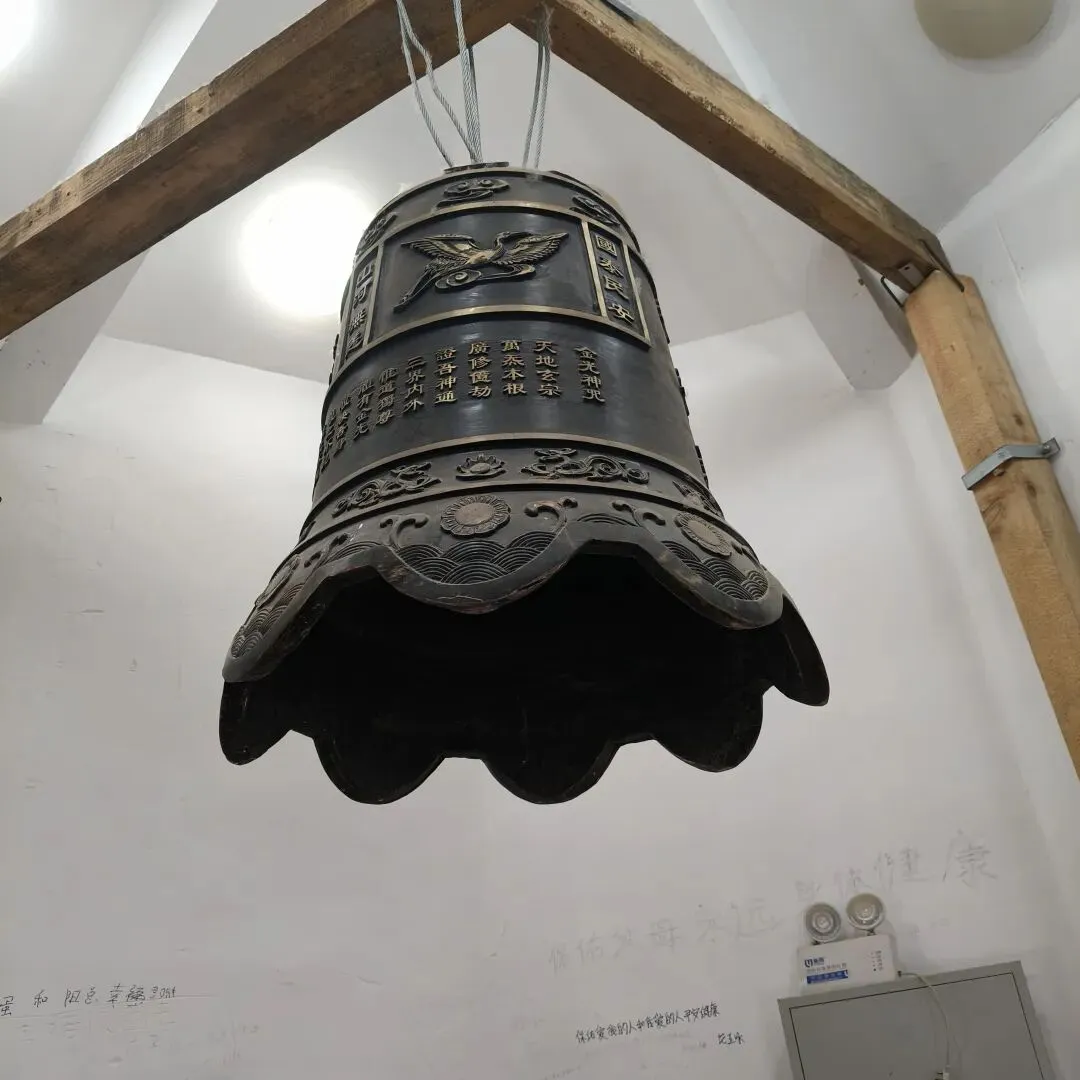 第一层供奉着各路神仙,在文昌星神主前,俩宝很虔诚地跪拜,大宝还上了香;才知晓,范、秦、顾、国等姓氏,原来都起源于范县;还有四大天王介绍等内容;顶层有一口大钟,撞一下,发出洪亮的声响,余音袅袅。