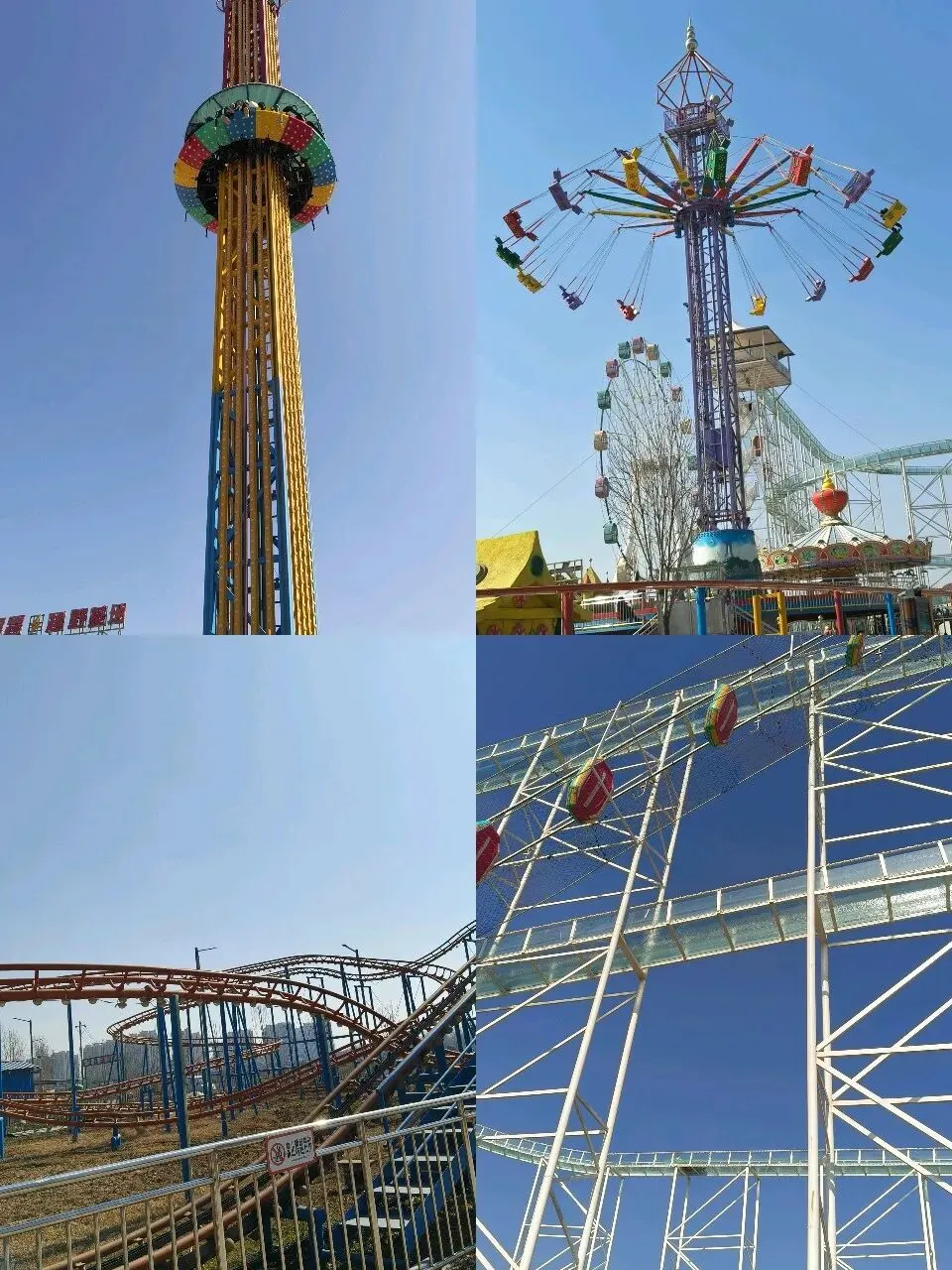 塔后是游乐项目,那是孩子的乐园,俩宝雀跃不已。高空飞翔、疯狂老鼠、旋转塔、玻璃水滑道、古堡惊魂、幻境空间……俩宝玩得肆意欢快,钱也哗哗地往外出,不知不觉二百元就搭进去了。