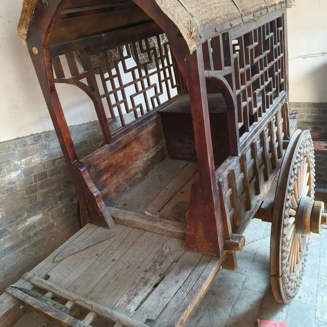 围着一辆马车,我看了半天。这跟家里的拉车子很像,但是做工精细,镂空设计,还有座位,想必也是古代达官贵人的专车吧。