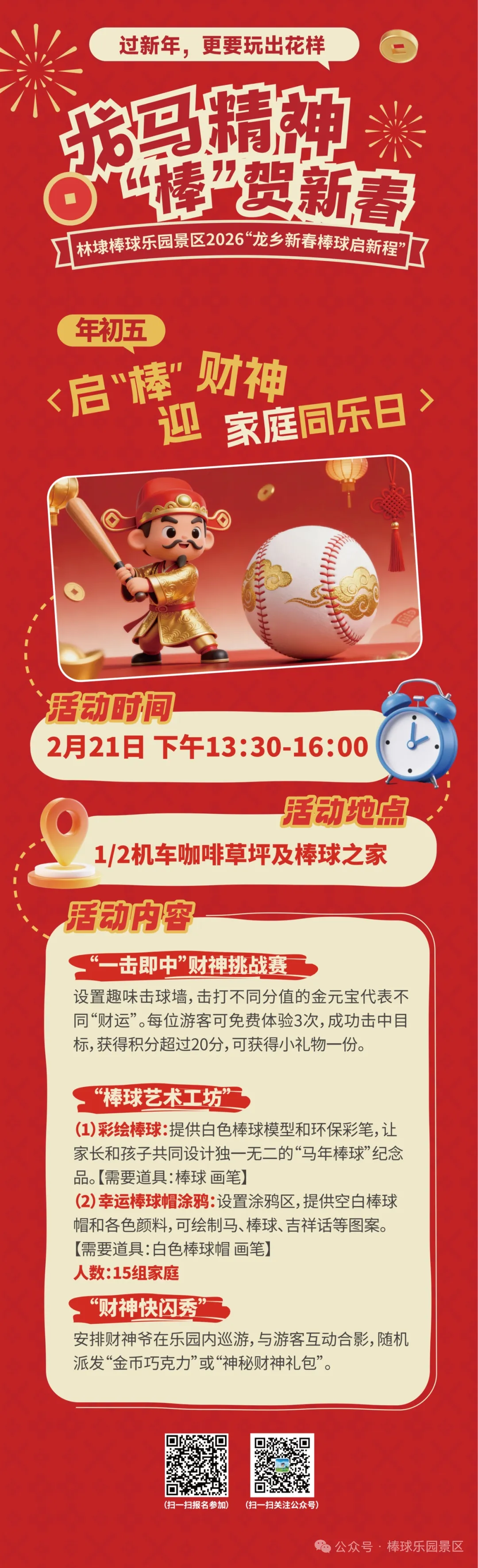 “龙马精神・‘棒’贺新春”,这个春节,不必远行,就来平湖棒球乐园景区。赴一场人气之约,把欢声笑语与新春福气,统统收入囊中!