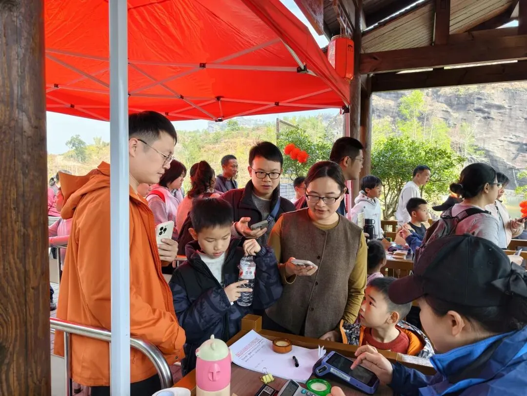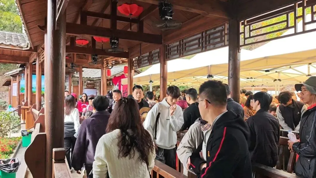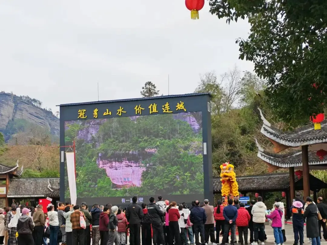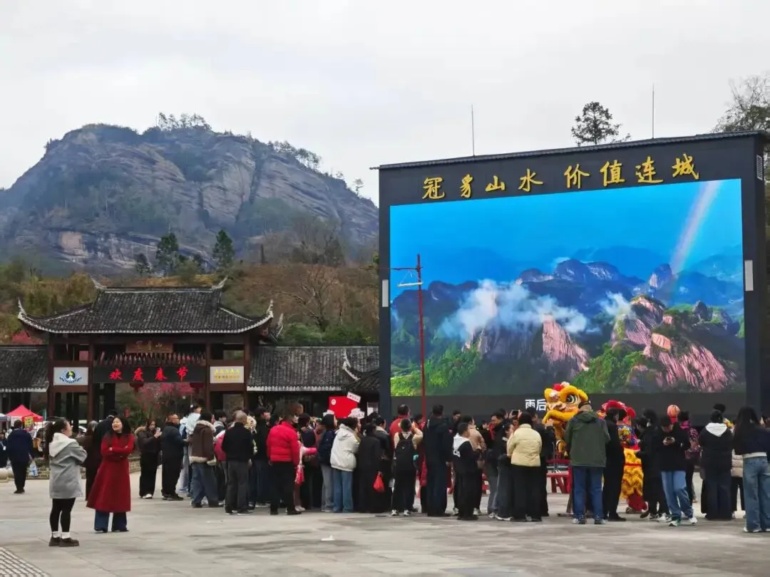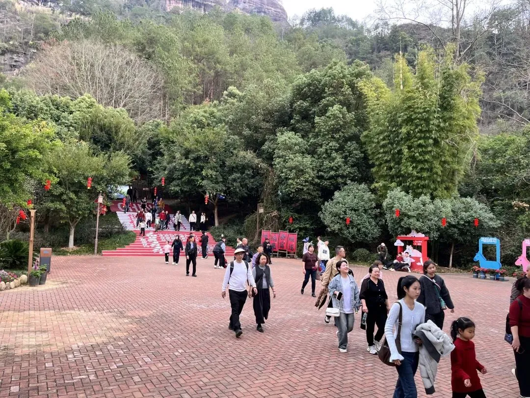 大年初三,冠豸山景区春风和煦,游人如织,石阶接踵,亭台盈笑,喧闹中八方游客与冠豸山水同频共振。喜庆的灯笼在冠豸山檐下轻摇,喧天的锣鼓声在石门湖广场回荡。游人有序地穿梭在如画的景致中,与景区工作人员细致入微的守护,共同勾勒出冠豸山马年温暖如春的画卷。