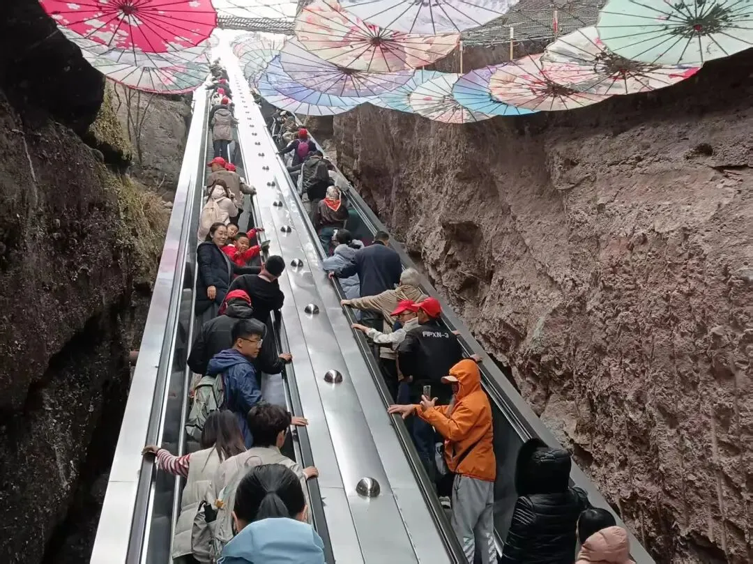 冠豸山正山游客携家带口充分体验完A线,累并快乐着