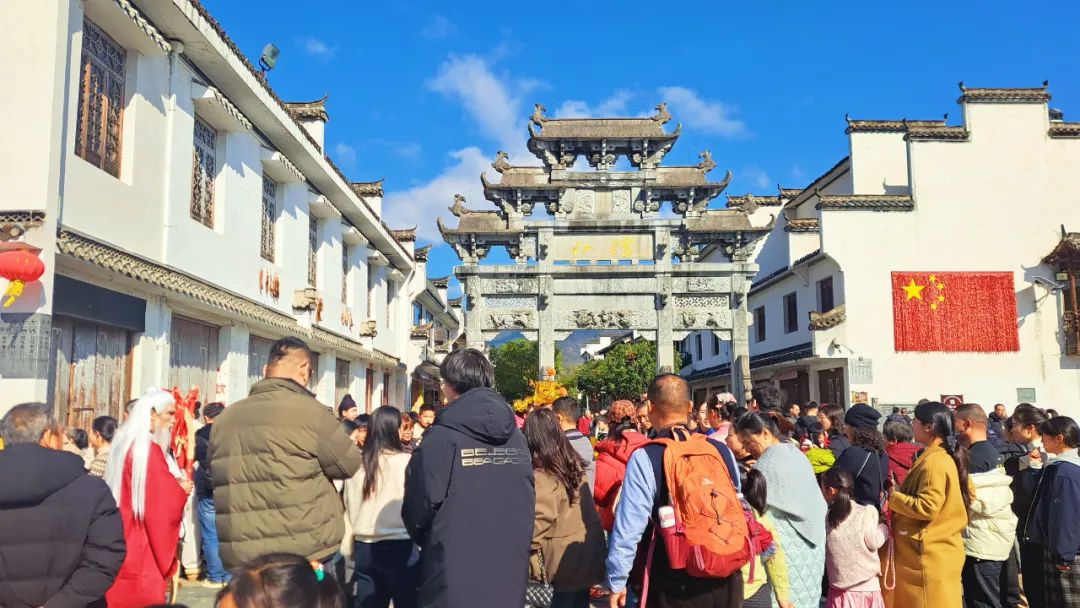 白墙黛瓦间灯笼摇曳,青石板路上游人如织。景区精心打造各类新春活动,民俗展演、非遗体验、新春祈福等轮番上演、精彩纷呈,让四海宾朋置身古村画卷,沉浸式感受徽州年的热闹与温情。