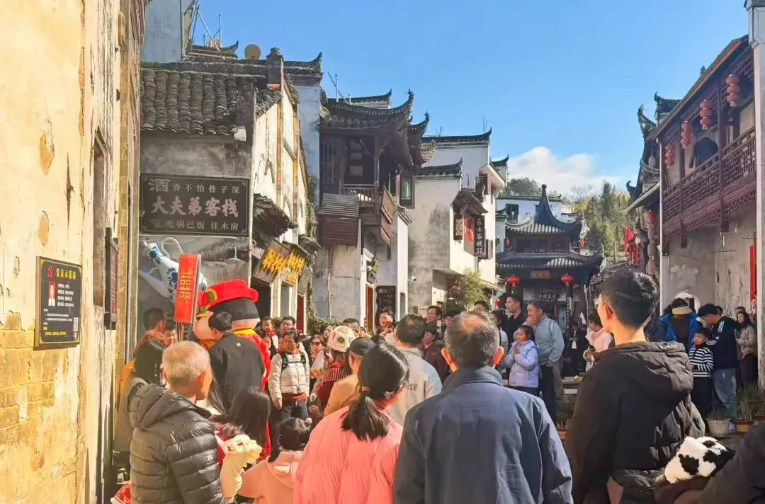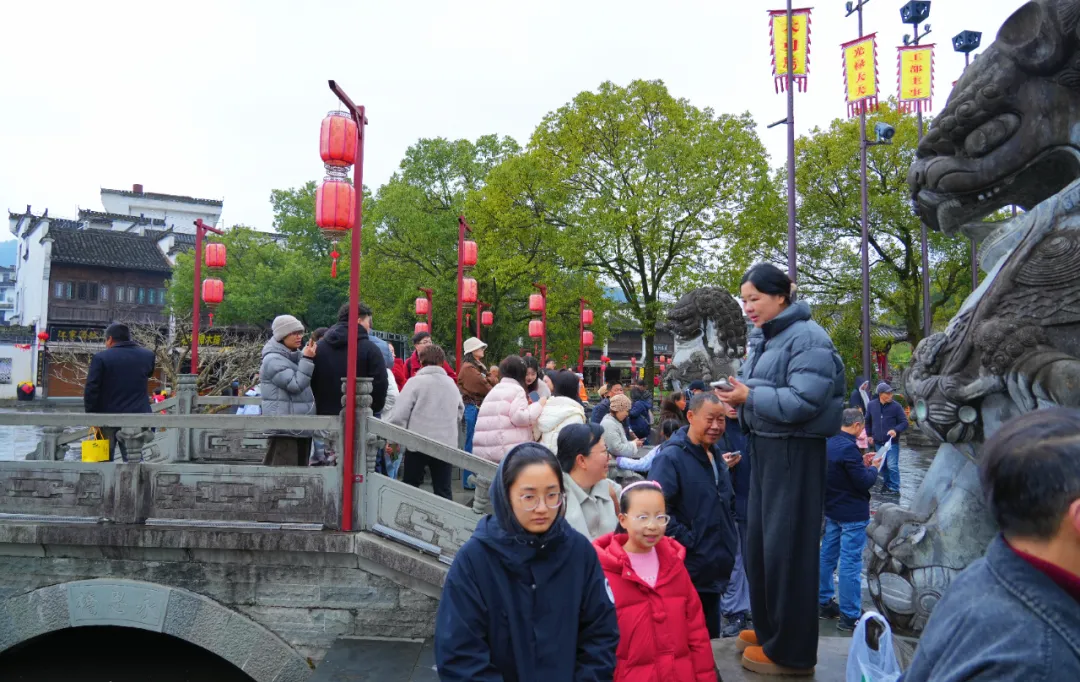 白墙黛瓦间灯笼摇曳,青石板路上游人如织。景区精心打造各类新春活动,民俗展演、非遗体验、新春祈福等轮番上演、精彩纷呈,让四海宾朋置身古村画卷,沉浸式感受徽州年的热闹与温情。