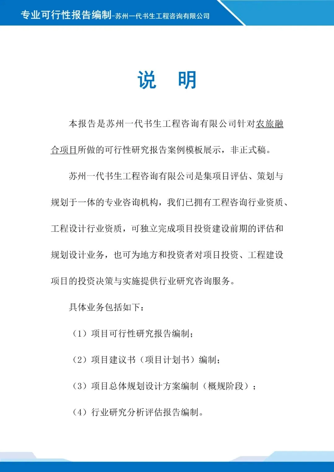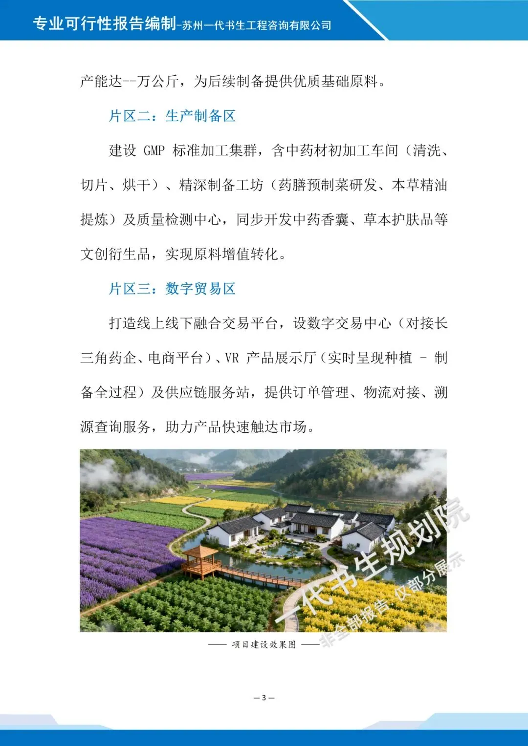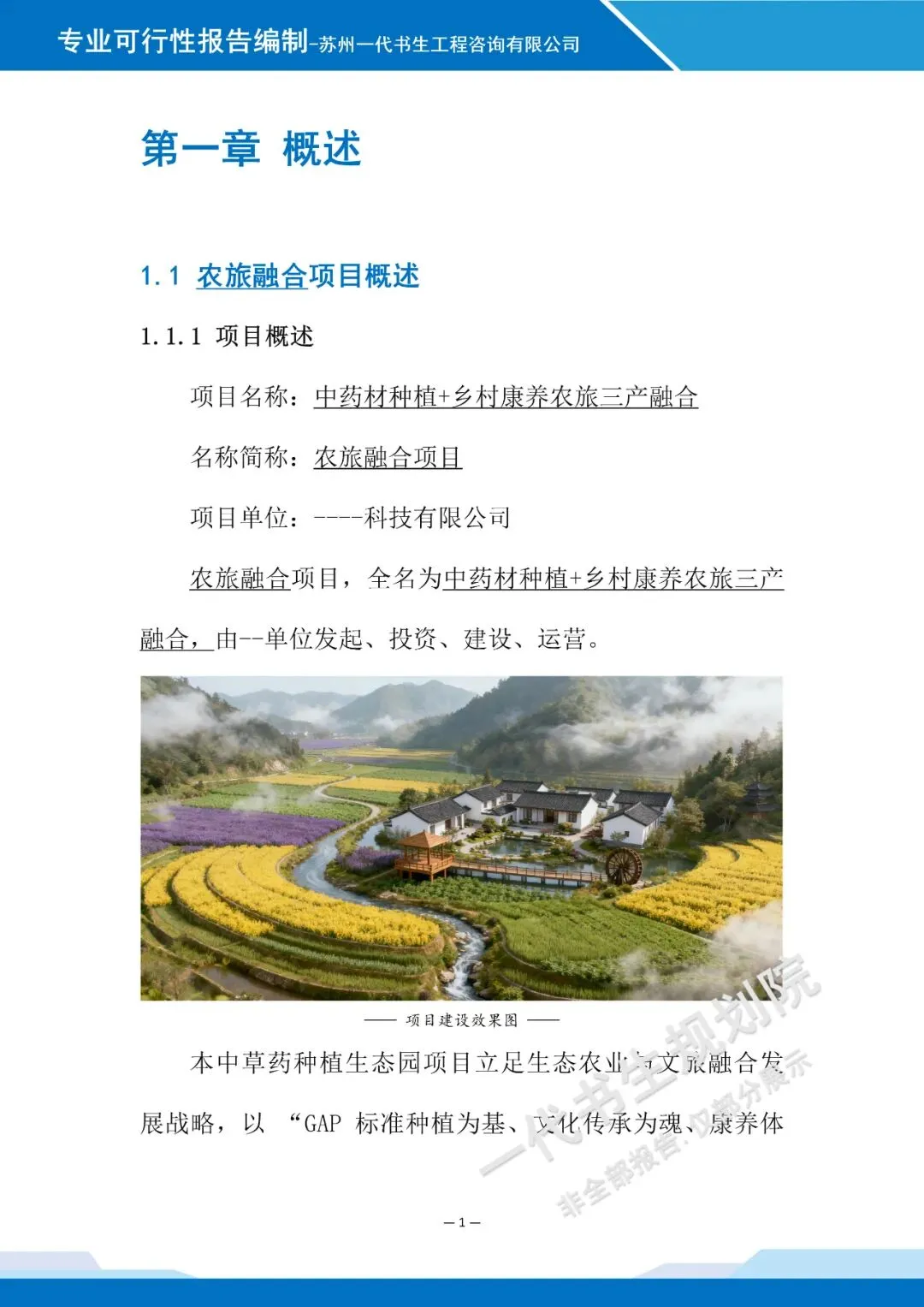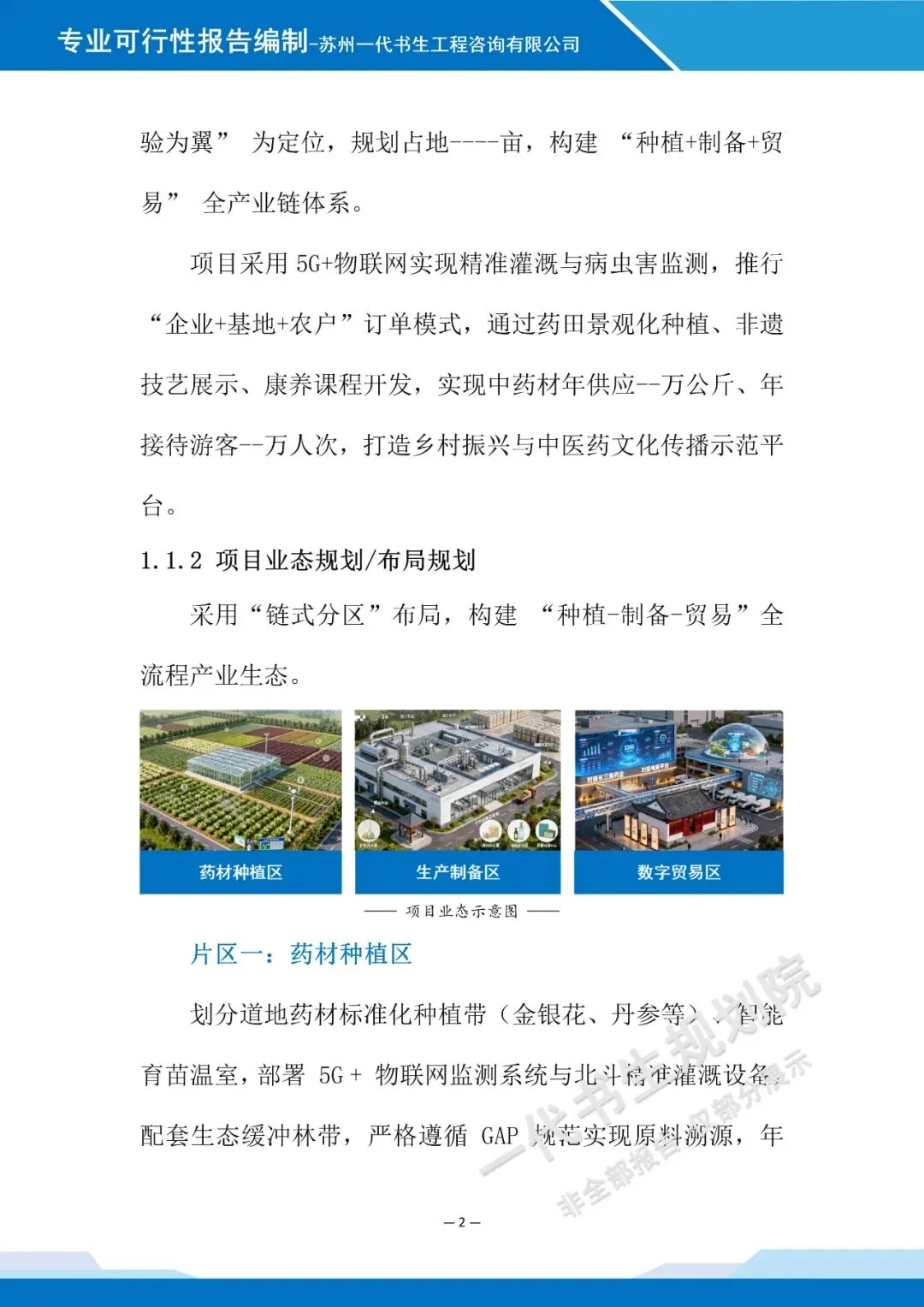 【一】案例报告名称 【二】项目可行性研究报告出具公司 苏州一代书生工程咨询有限公司 【三】项目可行性研究报告编制背景说明本可行性研究报告由苏州一代书生工程咨询有限公司编制,立足中药材种植产业发展肌理与文旅融合发展趋势,聚焦“种植+旅游”业态融合的创新需求,系统研判项目建设的可行性与适配性。编制过程中,团队深度调研中药材种植产业特性与文旅消费市场痛点,结合产业发展规律与文旅融合应用场景,为项目建设提供兼具前瞻性与实操性的分析指引。 【四】项目可行性研究报告模板 注:以下仅为报告部分内容展示,非完整版本。