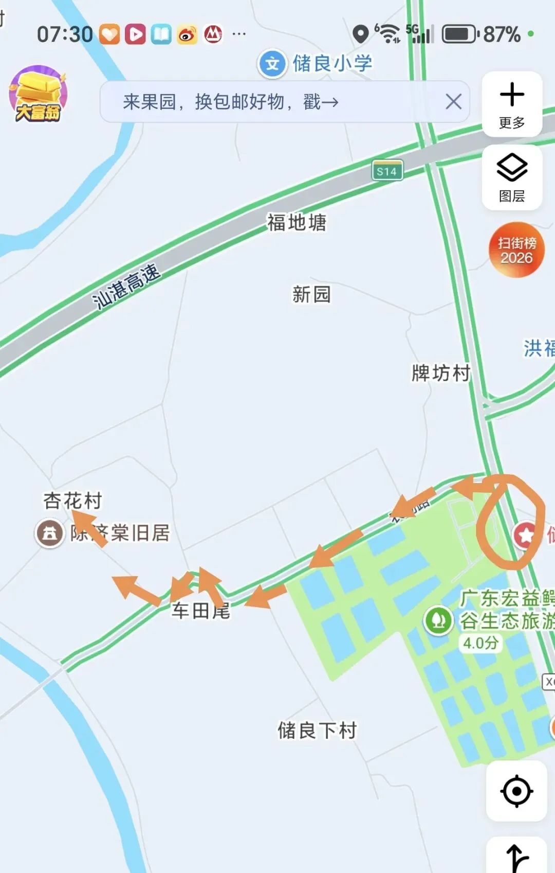 以上线路可以坐到储良村委会下车再走950米左右即到
