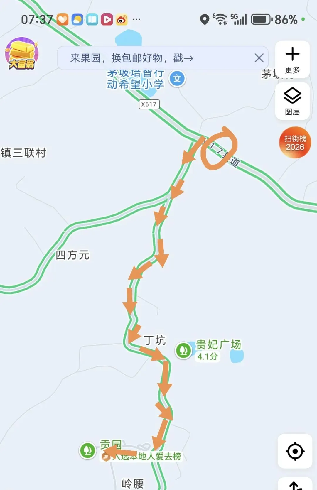 桥头村方面可以坐到红荔阁附近下车即到,元坝村方面则可以坐到元坝村委会附近下车即到