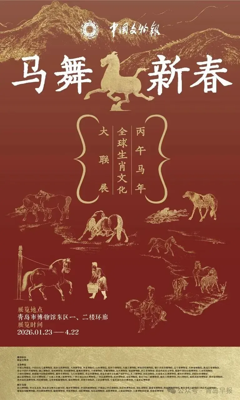 图源:青岛市博物馆 青岛市博物馆马舞新春、骐骥王国、好运桑珠孜山海共潮音三大特色展览惊艳亮相,九大趣味活动轮番上线,还有沉浸式XR体验,带你过一个文艺味十足的春节。春节期间,属马市民游客可免费拓印生肖马年画一张,每日限前15位。