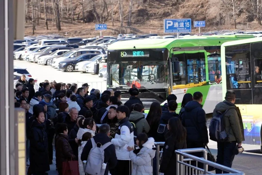 下午一点,景区公交司机闫志光才终于能抽空在车位上吃上一口午饭。三两口吃光手里的盒饭后,闫志光便戴上白手套继续开始属于他的春节旅程。十几年来,闫志光错过了无数个家里的年夜饭,却从未缺席过一次节日的运营。听着车厢里游客们互相分享着旅途见闻的欢声笑语,他的心里也被温暖一寸寸填满。