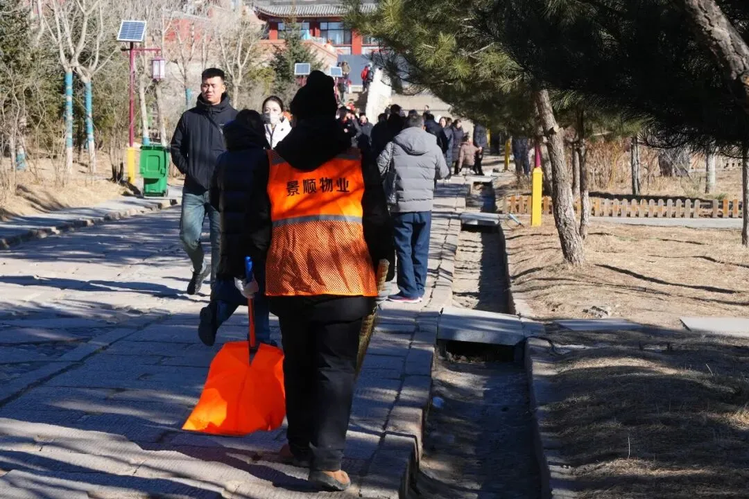 红红火火的中国结下是团圆的欢声笑语,山川古建前相机的“咔擦“声定格着一幕幕温暖的画面,景区的休息坐椅上一家人分享着带来的美食……春节的五台山景区,被浓浓的年味和团圆的喜悦包裹得严严实实。在这幅热闹祥和的画卷背后,有这么一群人,他们无暇欣赏人文美景,默默坚守在各自的岗位上,似在团圆之外又融入团圆之中,用忙碌的身影守护着每一位游客在景区的假期体验。