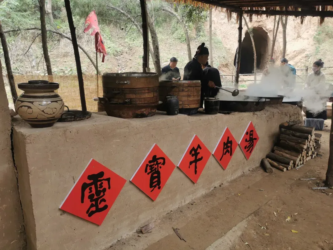 函关古道里,超有特色的函谷关铏羹,就是复刻大秦军营美食的——第一碗大秦羊汤!军灶火旺、铁锅咕嘟,奶白浓汤翻滚飘香,羊肉鲜、香料足,老远就香到流口水~