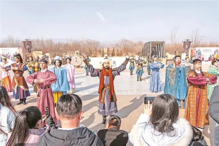今年春节,西夏陵景区换了个“玩法”。还未踏入蜿蜒廊街,一缕苍茫古乐便如丝如缕萦绕耳畔。身着古装的舞者翩跹起舞,仿佛瞬间将人拉回千年前的西夏。