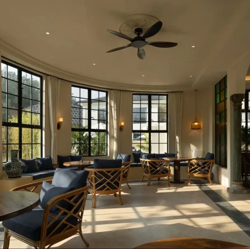 深色柚木家具在南洋建筑内