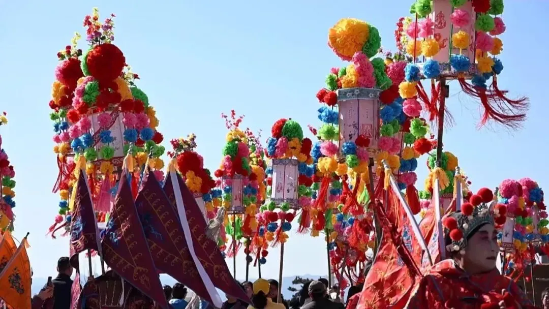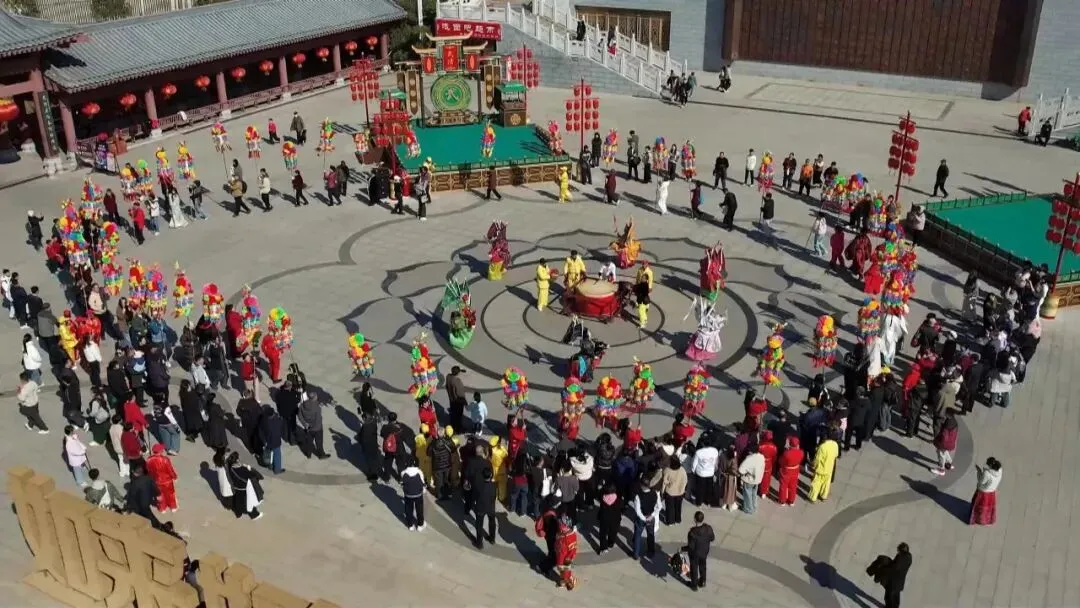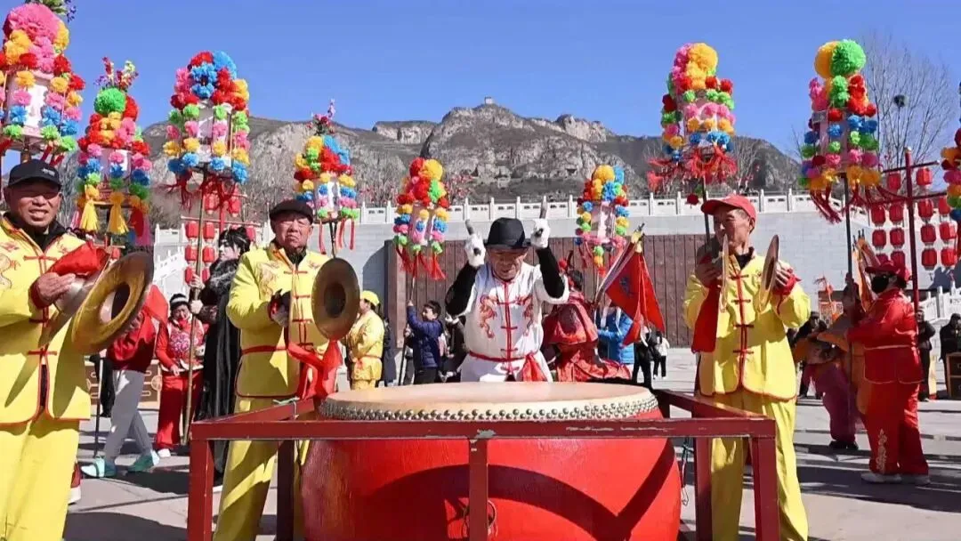在响堂山石窟的金鼓广场,舞龙、跑竹马、苇子灯阵等特色民俗活动轮番上演,现场热闹非凡。