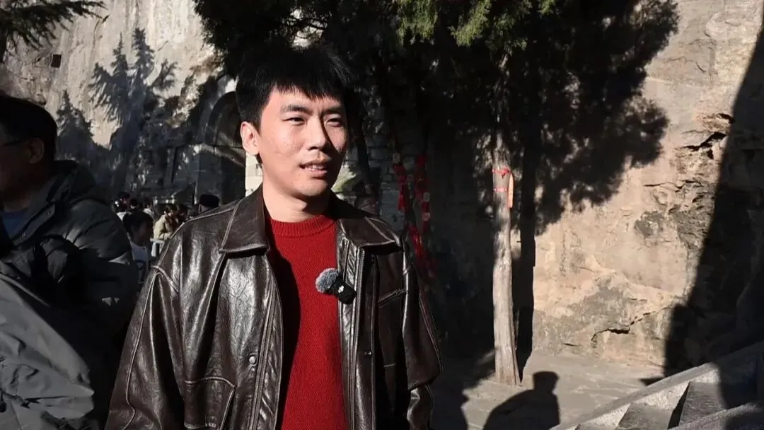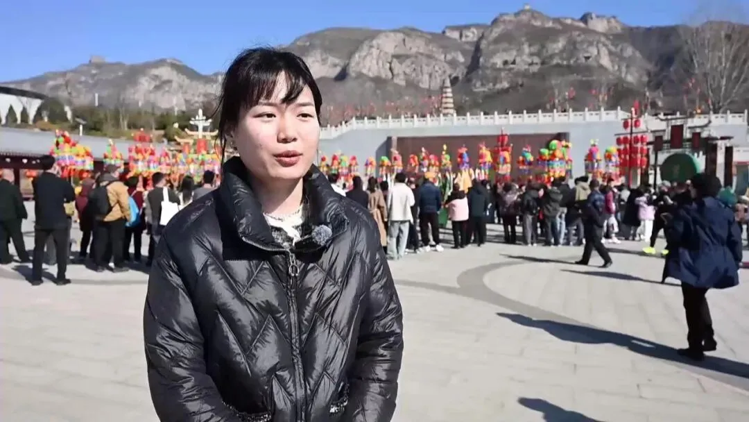 我是从河南新乡来的,和我爸妈一起来响堂山石窟这里游玩,看了很多传统民俗文化活动,也体验了非遗苇子灯阵,觉得还挺热闹,非常有年味儿,在这里我们也祝大家新春佳节恭喜发财、万事如意!