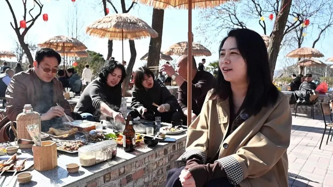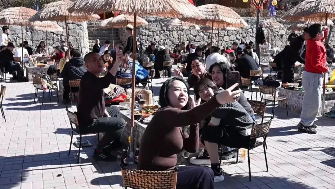 春节期间,景区除了提供文化体验外,还为游客安排了特色美食、巨型贴贴墙、互动打卡点等趣味项目,进一步充实了游客的游玩体验,强化节日氛围。在响堂山民俗村的十八土灶区域,炖鸡、炖鹅等特色农家菜香气四溢,游客们围坐土灶旁,吃着热乎的美食,唠着家常,在氤氲的热气中感受着冬日里的温暖与温馨。
