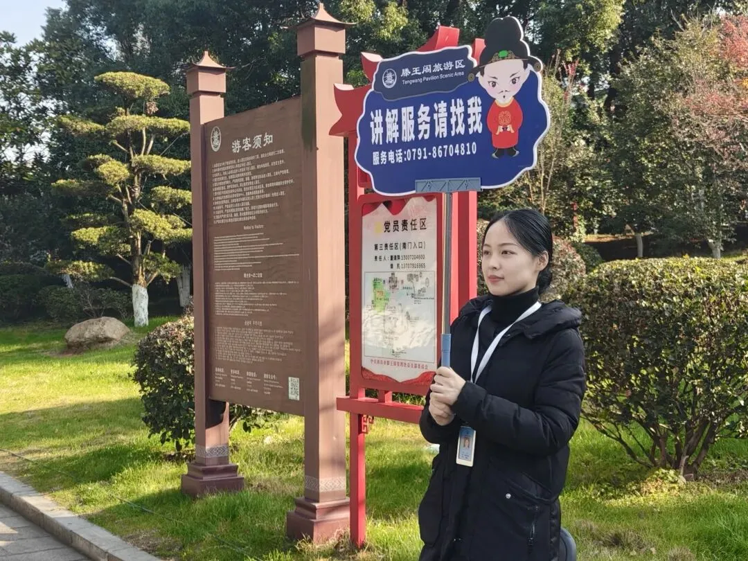 "落霞与孤鹜齐飞,秋水共长天一色……"在滕王阁各层展厅,讲解员们以生动的语言将王勃笔下的千古名篇娓娓道来,从阁名的由来、建筑的沿革,到江西历代文人墨客的传奇故事,再到南昌"物华天宝、人杰地灵"的深厚底蕴,她们如数家珍。面对孩子们好奇的追问,她们俯身讲解;面对老人家的怀旧情怀,她们侧耳倾听。一段段讲解,让游客在登阁揽胜之余,更深刻感受到南昌这座城市穿越千年的文化魅力与人文温度。