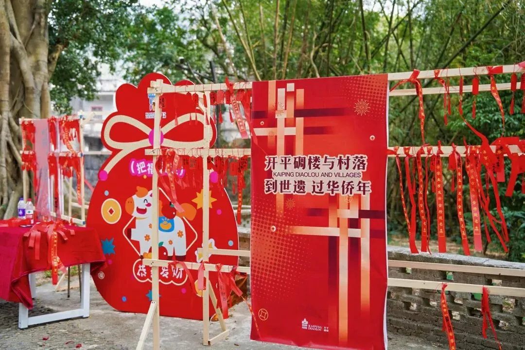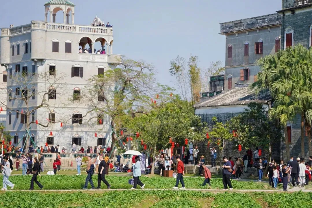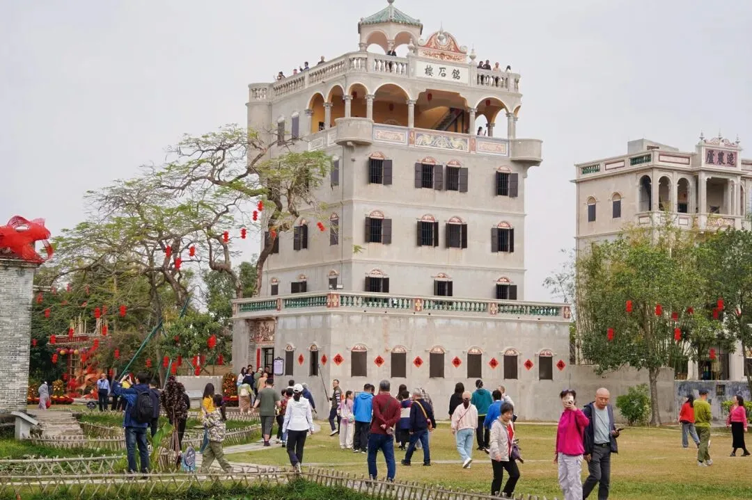 欢喜过大年,新春年味浓。开平碉楼文化旅游区内外车水马龙、人流熙攘,处处洋溢着侨乡独有的年味与喜庆的中国红。