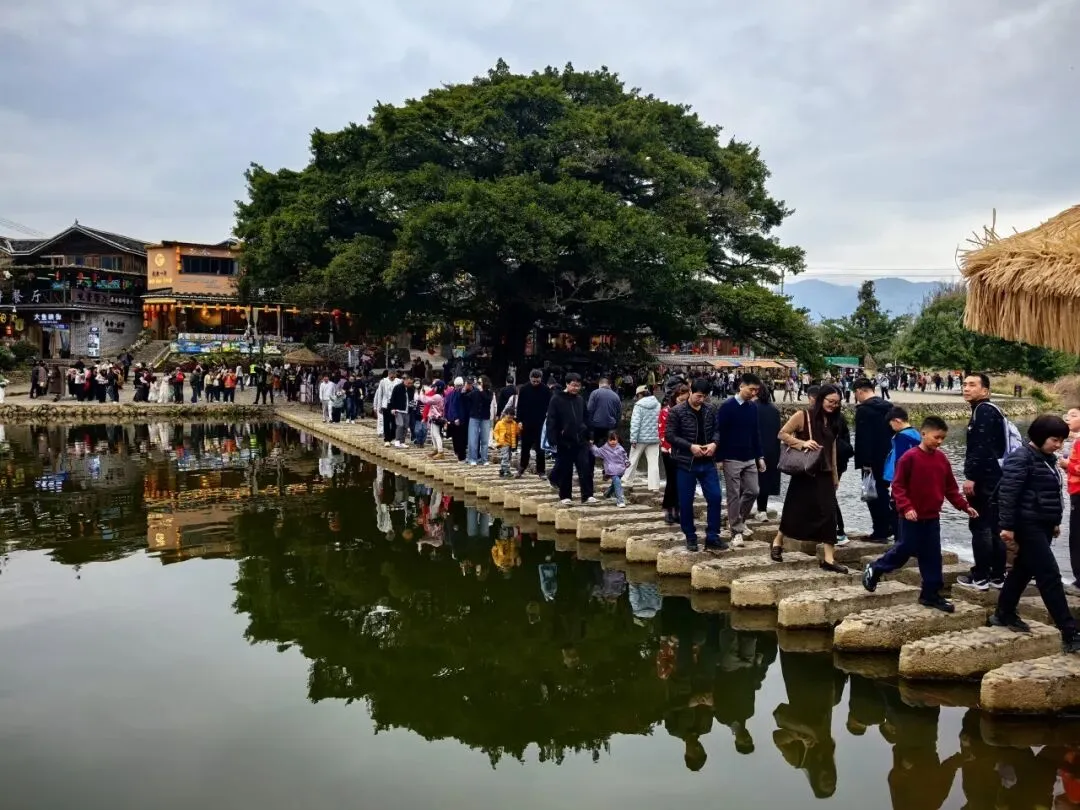 春节假期,南靖土楼景区持续火爆,处处洋溢着喜庆的节日氛围。在云水谣景区,游客摩肩接踵,络绎不绝。许多家庭选择在土楼里过年,感受别样的年味。