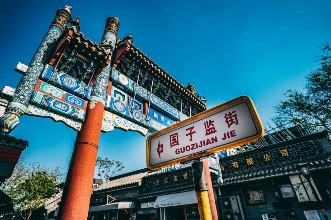 街道临于闹市,街边多是低矮整洁灰墙灰瓦的四合院民居,两旁槐树成行,浓荫蔽日。走两步就到孔庙,碑帖、院落,透着老北京古城气息。