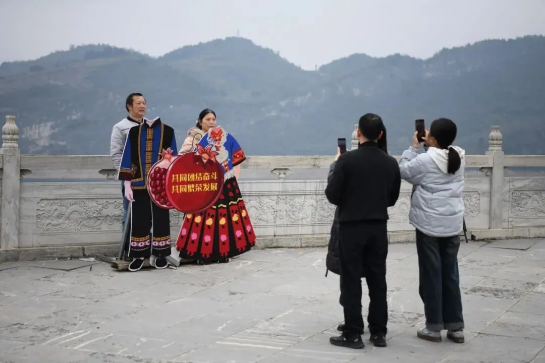 当天,标志性的龙王阁与999米龙形长廊成为游客打卡首选。大家拾级而上登龙王阁,饱览湖光山色;漫步龙形长廊,与“飞龙”雕塑合影留念,参与拜龙祈福活动,将新年的美好心愿寄托于山水之间。