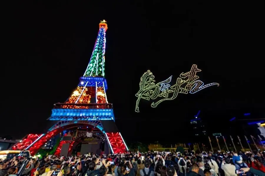 世界之窗春节期间推出“闪光迎新春”活动,集巡游演艺、全新科幻大秀、科技天幕大秀、无人机表演、互动游戏于一体。