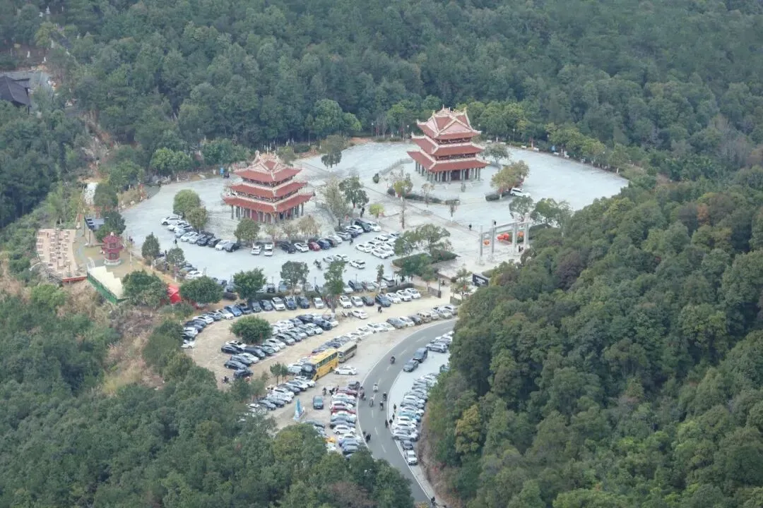 尽管气温较低,但游客的热情丝毫未减。景区内人头攒动,摩肩接踵,山间步道上、亭台楼阁前,随处可见前来观光祈福的游客。