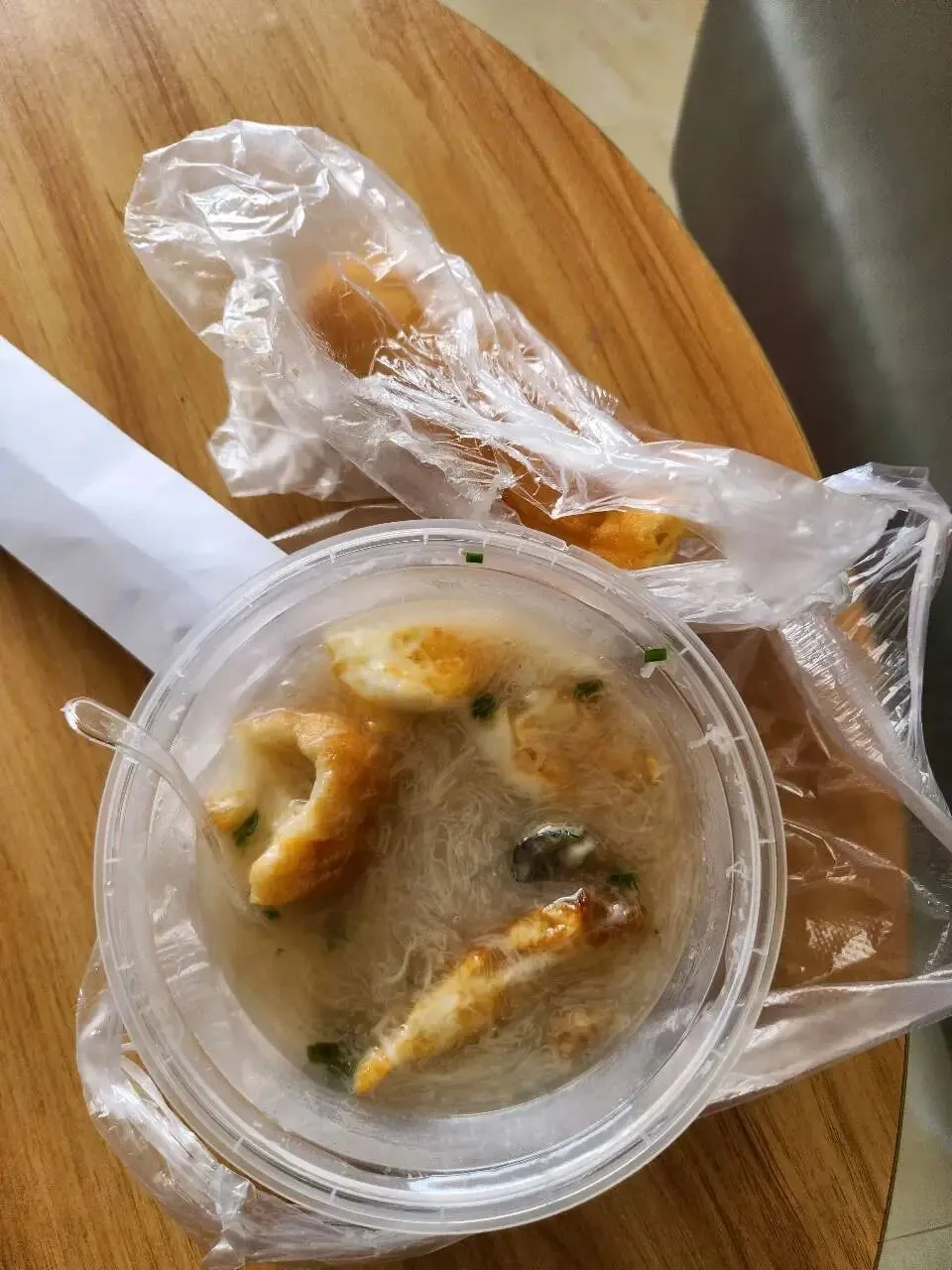 中午吃了份面糊,加了油条,粗肉,海蛎,虾。美食没遗憾了。