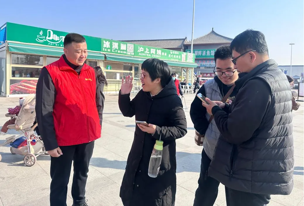 活动中,志愿者们在景区入口处耐心协助不熟悉手机操作的游客,帮助他们通过官方公众号、小程序等渠道完成线上预约购票流程,还为他们提供了合理的游览时间建议。在景区停车场出入口等位置主动为游客提供交通指引,提醒注意交通安全;用行动和热情为游客提供疑难解答、景点推介、门票预约、交通指引等志愿服务,充分体现了志愿者乐于奉献的精神品质。