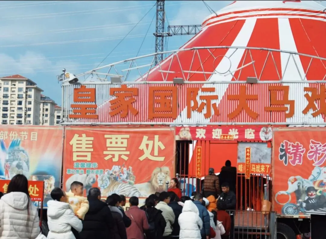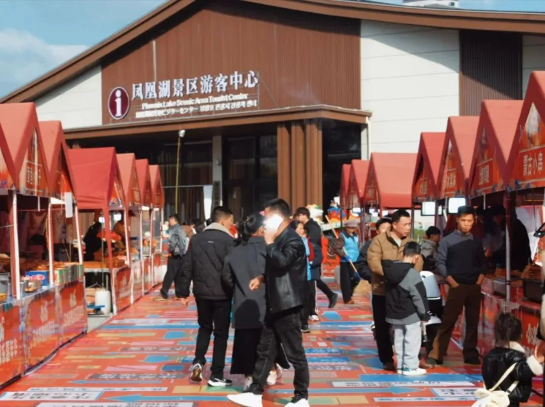 凤凰湖景区洋溢着新春的喜庆氛围,往来游客多为阖家出游,一派团圆热闹的景象。景区游客中心前,各色美食香气氤氲,游人或驻足挑选,或携家带口漫步其间。不远处,红白相间的皇家国际大马戏帐篷格外醒目,大人牵着孩子、老人伴着晚辈,在欢声笑语中等待着一场精彩的马戏盛宴,将新春的热闹与温馨拉满。