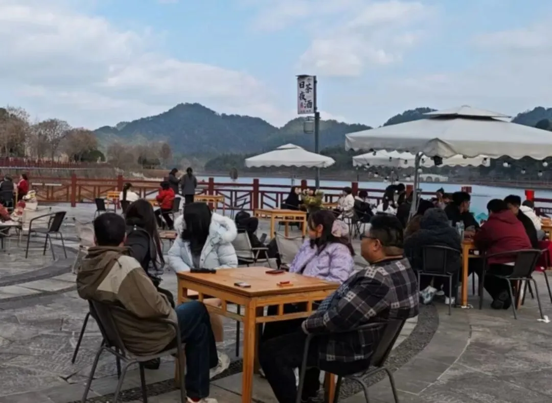 游客们沿湖畔缓步徜徉,感受清风拂面,呼吸着草木的清新气息。登聚远楼,极目远眺,整座德兴城区的美景尽收眼底,站在苏东坡曾题诗咏叹的地方,千年诗意与眼前盛景交融。在凤凰水寨,又是一番悠然惬意。与家人围坐一处,慢品清茶,闲话家常,在山水相依间,尽享团圆温馨。